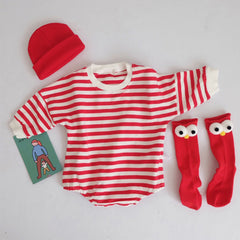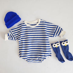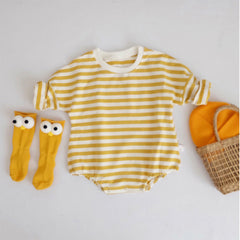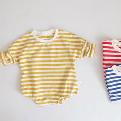 - Colorful, trendy and classic striped design. Round neck long sleeve shirts romper. Snap closure, easy to change baby's diaper.